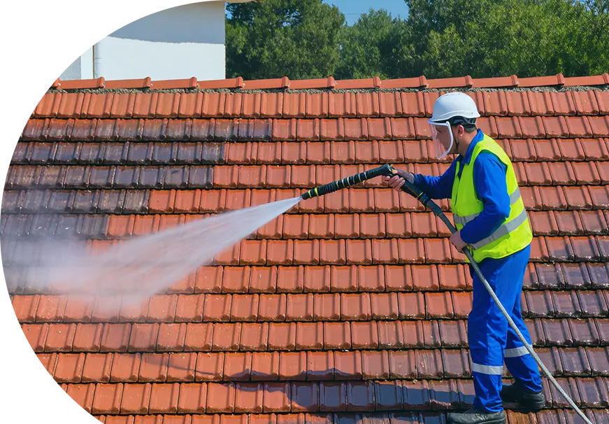 Limpeza profunda das telhas cobertas de musgo.