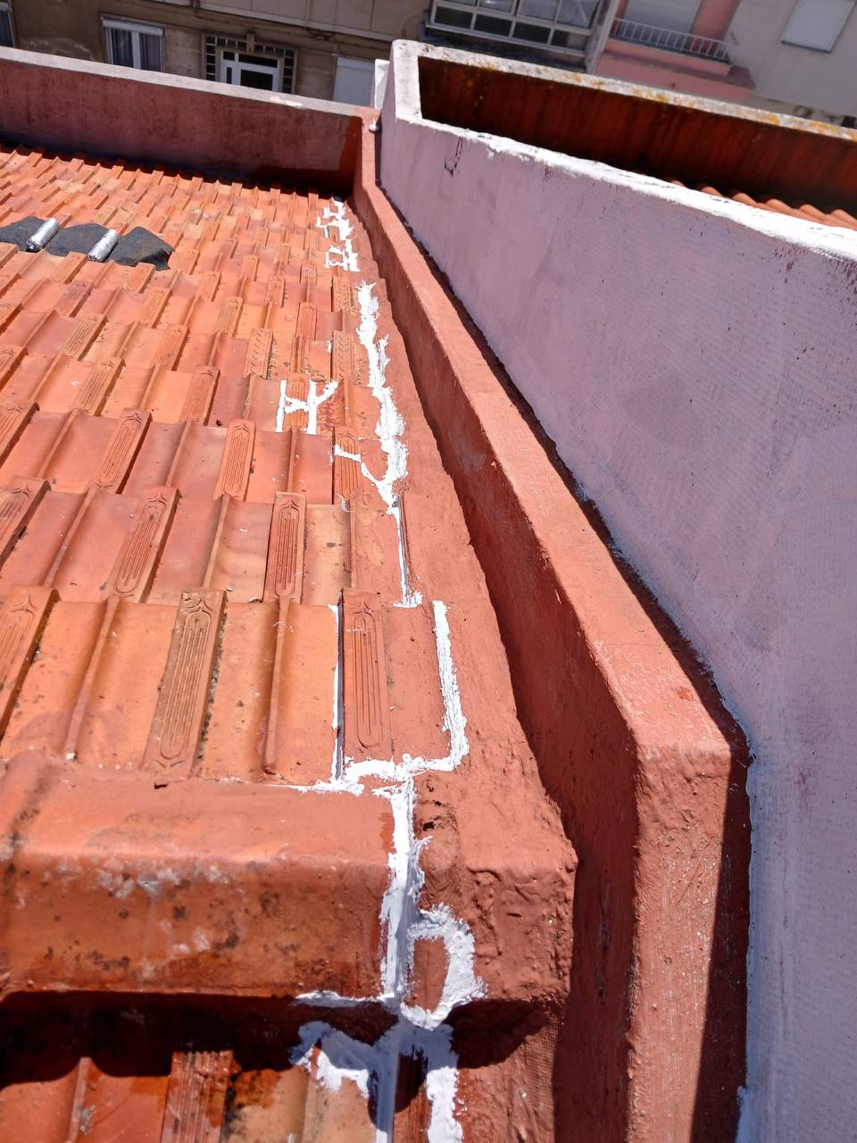 Verificação de danos visíveis nas telhas. Avaliação de fissuras e telhas desgastadas, com recomendações de manutenção preventiva.